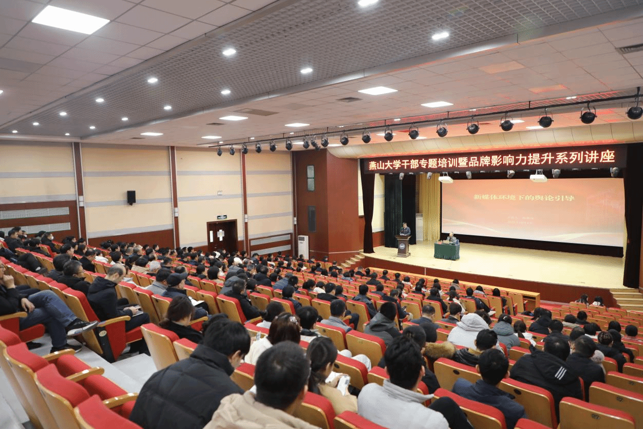 为深入贯彻落实党的二十届四中全会精神,扎实推进干部队伍能力建设与学校品牌影响力提升工作,着力增强干部教师在新媒体环境下的舆情应对与舆论引导能力,12月4日,燕山大学在西校区大学生活动中心举办了“新媒体环境下的舆论引导”专题辅导报告会。校领导、处级干部、专职辅导员、舆情员等参加了此次培训。报告会由校党委副书记蔡星周主持。